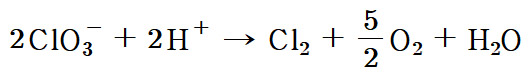 2ClO3^- + 2H^+ → Cl2 + 5/2 O2 + H2O