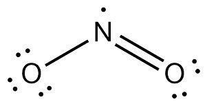 ▶ NO2에서 질소(N) 원자는 9개의 전자를 가진다.