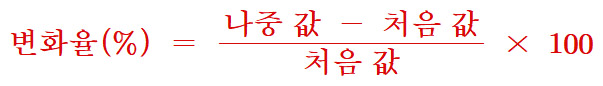 변화율(%) = [(나중 값 – 처음 값) / 처음 값] × 100