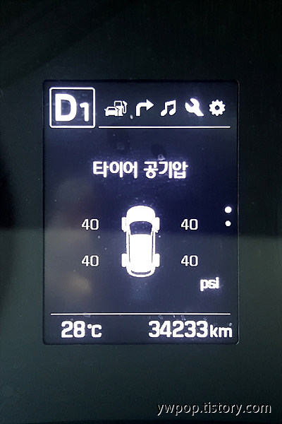 실내 TPMS 모니터에서 이 타이어의 공기압은