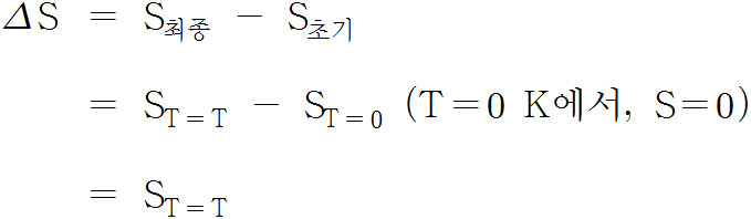 > 순수한 결정질 물질의 엔트로피, S는