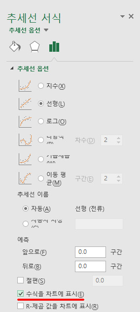 [4] [수식을 차트에 표시(E)] 에 체크하면,