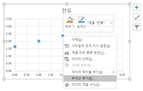 마우스 오른쪽 버튼을 클릭하고, [추세선 추가(R)...] 를 선택한다.