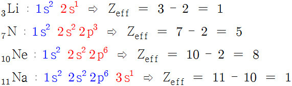 다음과 같이 원자가 전자의 Z_eff를 계산할 수 있다.