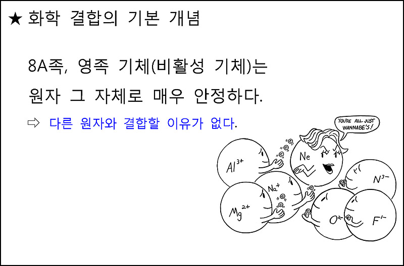 ---> 아~, 최외각 전자가 8개이면, 화학적으로 안정하구나...