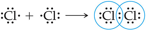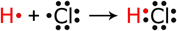 수소(H) 원자의 1개 원자가 전자와 염소(Cl) 원자의 1개 원자가 전자 공유