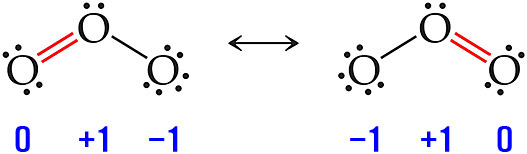 ⇨ 오존 분자는 2개 공명 구조(↔ 사용)로 나타낼 수 있다.