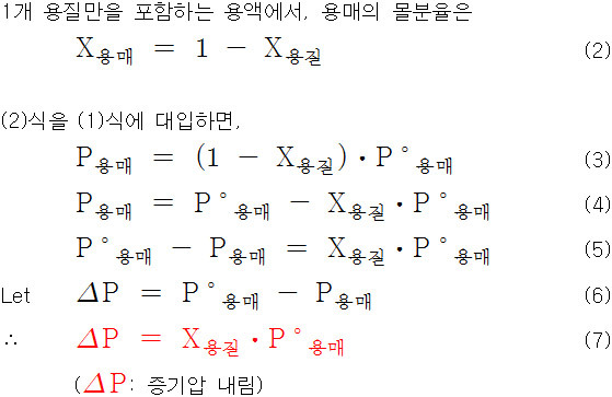 ΔP_용액 = 순수한 용매의 증기압 – 용액(속 용매)의 증기압