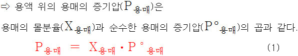 용매의 몰분율(X_용매)과 순수한 용매의 증기압(P°_용매)의 곱과 같다.