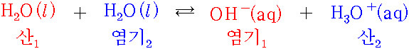 ---> 물의 자체 양성자 이동 (autoprotolysis of water)