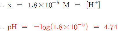 > [H^+] = 1.8×10^(-5) M