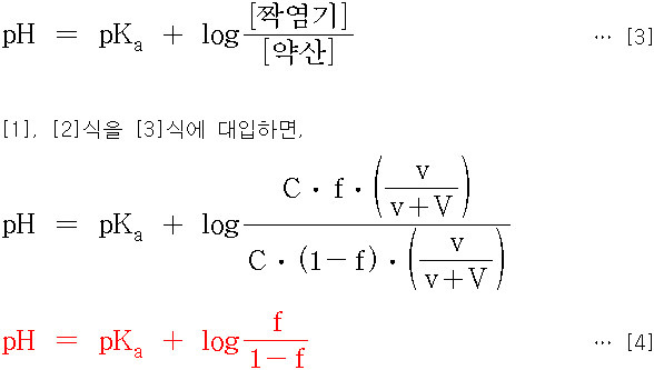 [4]식은 약산과 짝염기의 몰농도를 구해야 하는 수고를 덜어준다.