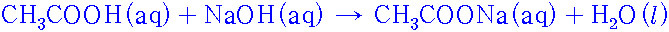 CH3COOH(aq) + NaOH(aq) → CH3COONa(aq) + H2O(l)