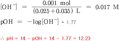 이때 염기의 농도와 용액의 pH는 다음과 같다.