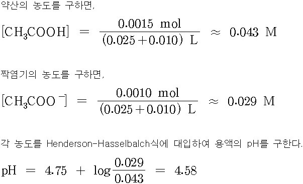 용액의 pH는 Henderson-Hasselbalch 식으로 계산한다.