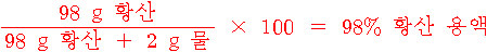 98% 황산 용액 = (98 g 황산 / 100 g 용액) × 100 이므로,