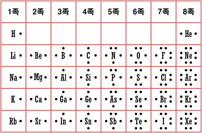 루이스 전자 점 기호로 나타낸 주기율표