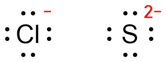 [그림] Cl^- Lewis dot structure. S^2- Lewis dot structure.