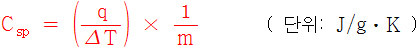 ② 물질 1 g에 대한 열용량을 비열(Specific Heat, C_sp 또는 C_s)