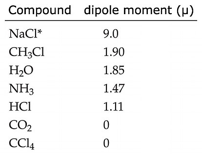 [도표] 몇 가지 화합물의 쌍극자 모멘트