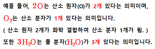 > 화학식(원소기호) 앞에 나오는 숫자는 보통 크기 숫자(큰 숫자)이고,