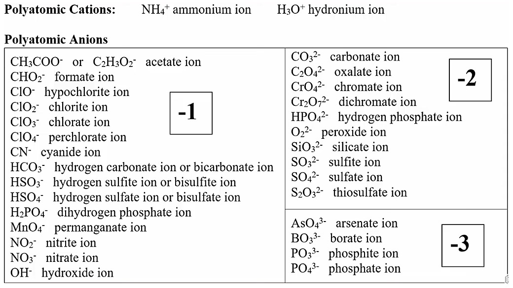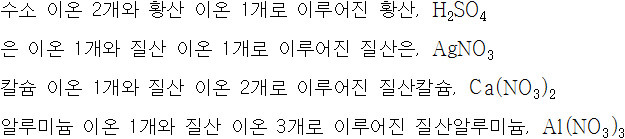 등과 같은 다원자이온은 몇 개 되지도 않기에 반드시 암기하도록 합니다.