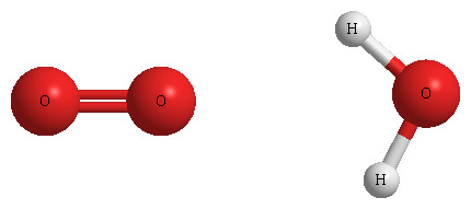[그림] O2 분자 1개와 H2O 분자 1개.