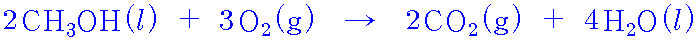 2CH3OH(l) + 3O2(g) → 2CO2(g) + 4H2O(l)