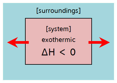 [그림] 발열반응일 때, 계와 주위 사이의 열 흐름.