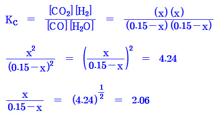 x = (2.06) (0.15 – x) = 0.309 – 2.06x
