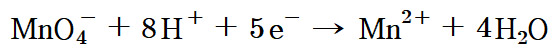 MnO4^- + 8H^+ + 5e^- → Mn^2+ + 4H2O