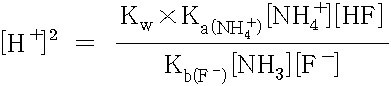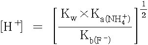 [H^+] = [ Kw × Ka(NH4^+) / Kb(F^-) ]^(1/2) ... ③