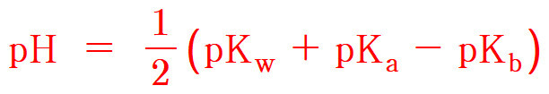 pH = 1/2 (pKw + pKa – pKb)