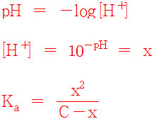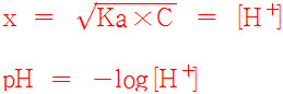 ③ 약산 용액의 pH (= 평형에서 [H^+] = x)