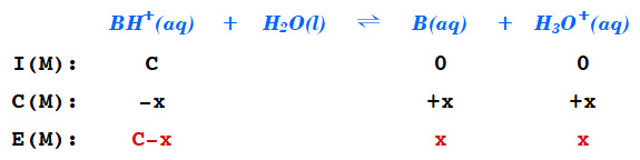 ---> Ka = [NH3][H3O^+] / [NH4^+] = (x)(x) / (C–x)