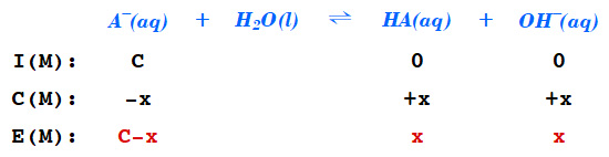 ---> Kb = [CH3COOH][OH^-] / [CH3COO^-] = (x)(x) / (C–x)