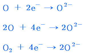 > O + 2e^- → O^2-