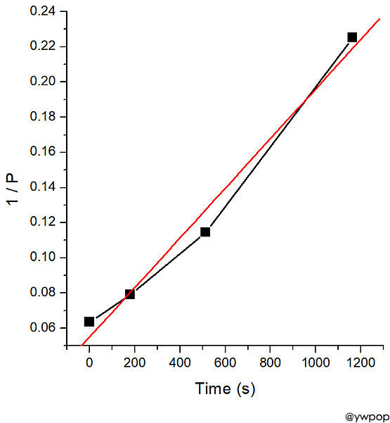 [그림] 1 / P_ClCO2CCl3 vs. Time 그래프.