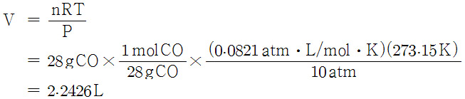 28 g의 일산화탄소(CO)가 차지하는 부피를 계산하여라.