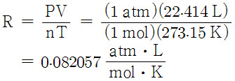 이 조건을 이상 기체 방정식에 대입하여 R 값을 계산하면,