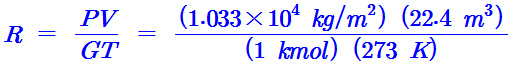 = [(101325 N/m2) (0.0224 m3)] / [(1 mol) (273 K)]