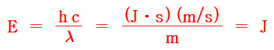 에너지가 ? J인 빛의 파장을 계산하면,