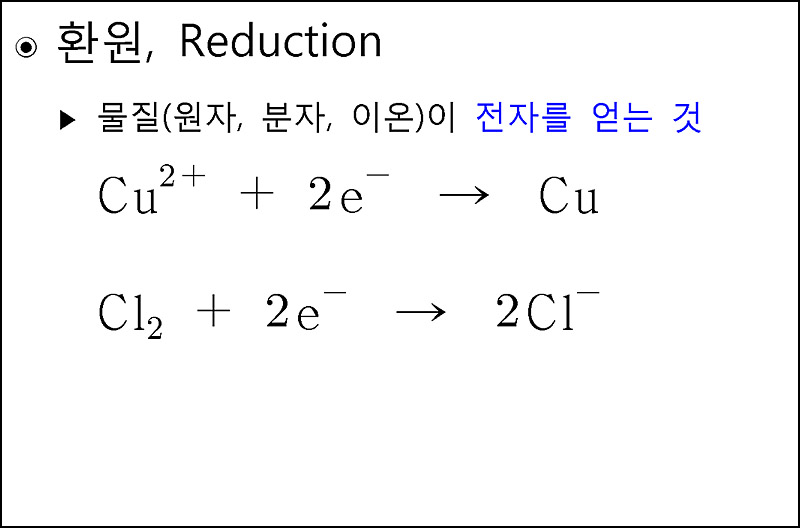 > 환원: 물질이 전자를 얻는 것