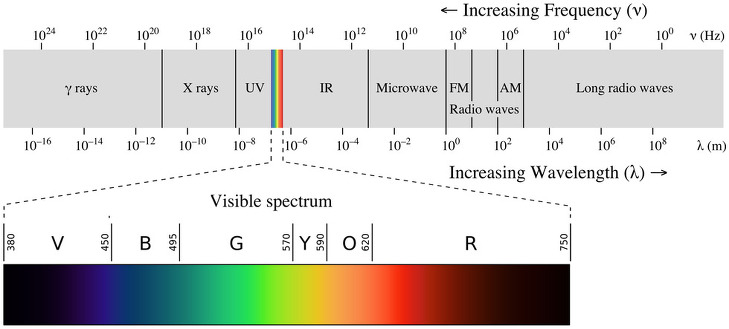 γ-선 > X-선 > 자외선(UV) > 가시광선(Vis) > 적외선(IR) > 마이크로파 > 라디오파