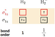 결합 차수 = 1/2 (결합성 MO 전자 수 – 반결합성 MO 전자 수)