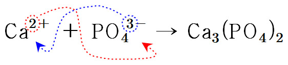 3Ca^2+ + 2PO4^3- → Ca3(PO4)2