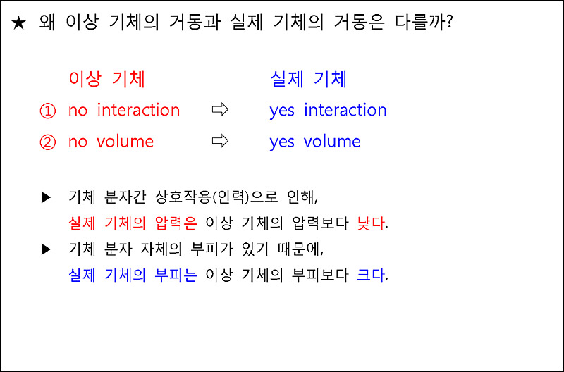 실제 기체의 부피는 이상 기체의 부피보다 크다.