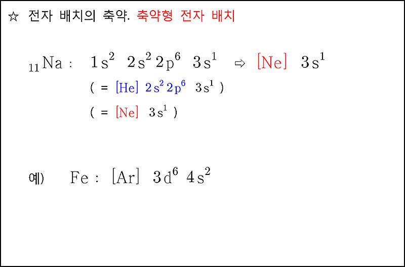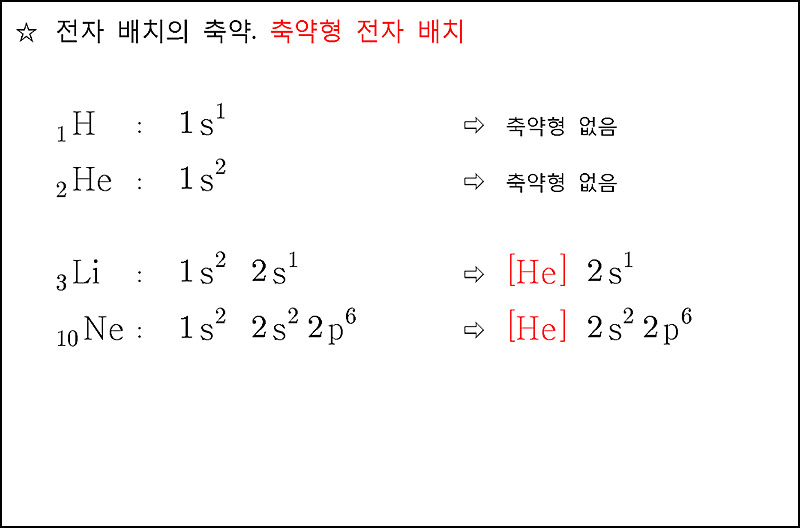 각 원소의 축약형 전자배치를 확인할 수 있다.