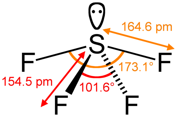[ 그림 출처 Wikimedia ] SF4 분자의 기하구조는 시소형(seesaw shape).
