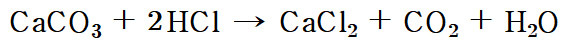 2HCl(aq) + CaCO3(s) → CaCl2(aq) + CO2(g) + H2O(l)